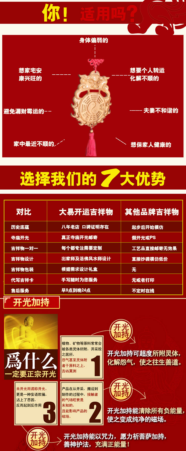 凡在大易开运吉祥物请购过吉祥物的缘主均会建立完整的客服档案,能得到优先的免费在线专家老师咨询服务。并在每年年底免费获赠第二年的吉祥运程手册。