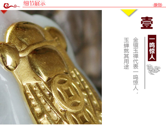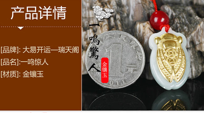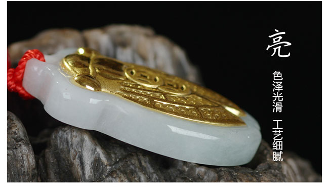 吉祥物、开运吉祥物金镶玉 一鸣惊人吊坠